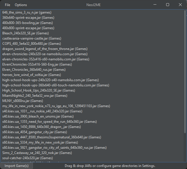 Загружайте игры так, как вам удобно: Перетаскивайте, импортируйте отдельные JAR-файлы, или загрузите целую папку. Как угодно, как вам нравится.
